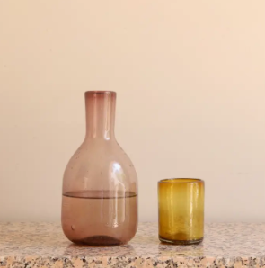 Handmade Recycled Glass Carafe And Glass Set (Pair)